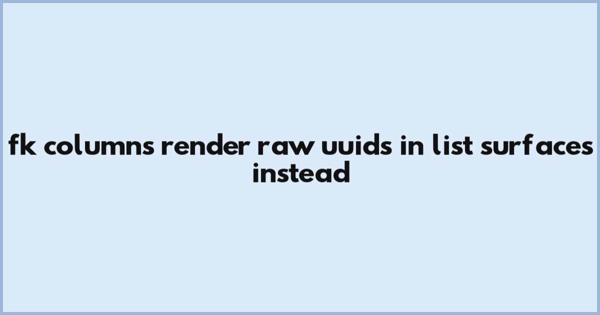 FK columns rendering raw UUIDs isn’t just a quirk - it’s a silent barrier to efficient work. When did your last list surface feel more like a cryptic puzzle? The fix is simple: let names replace codes - where visibility meets usability.